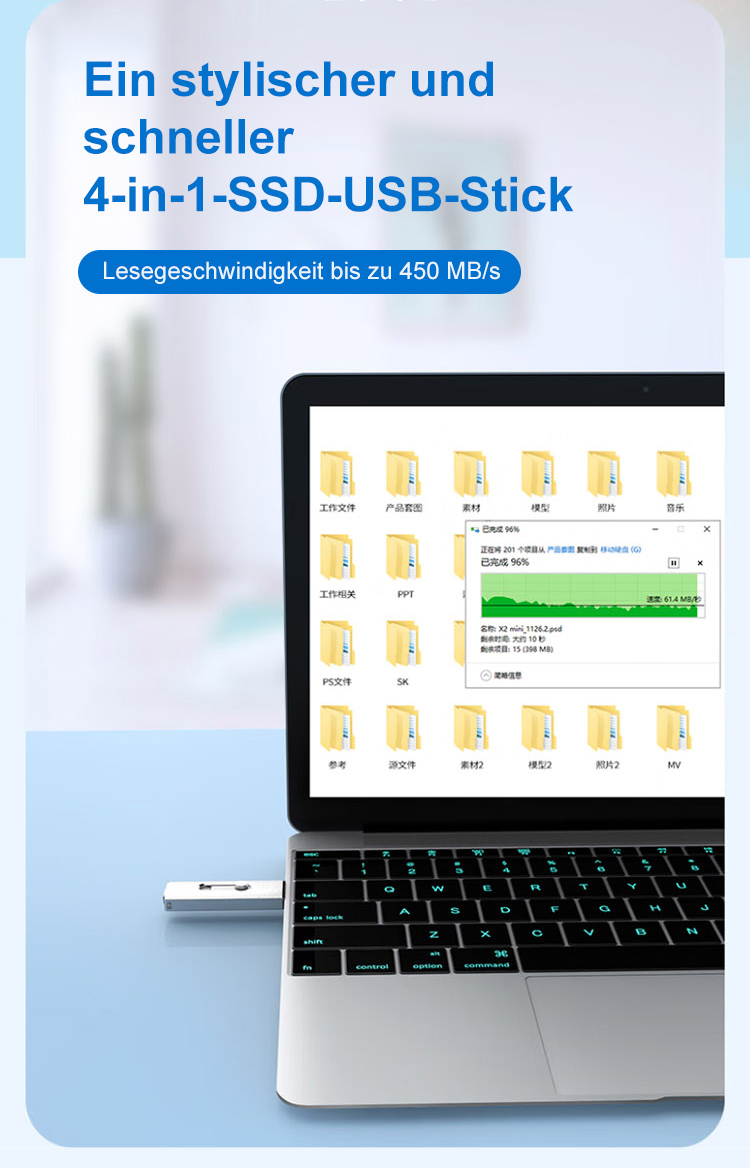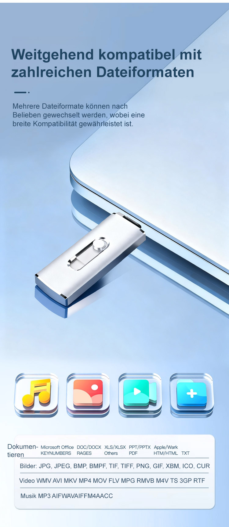 Plug-and-Play】Großkapazitäts-4-in-1-USB-Stick