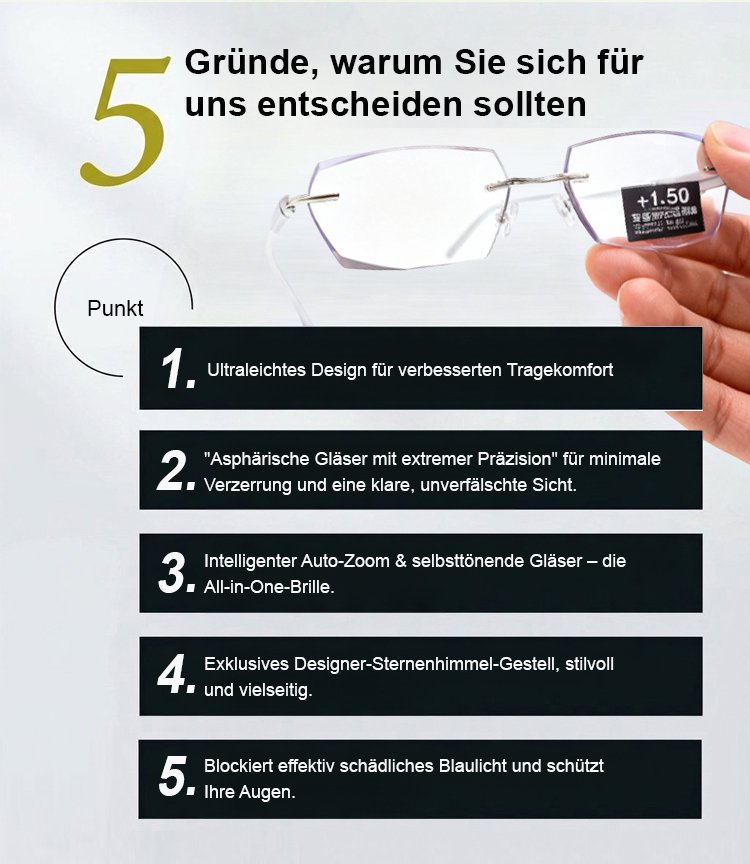 [Keine Augenuntersuchung erforderlich] Jena Optik-Technologie – „Starry Sky“ Smart-Gleitsichtgläser | Automatische Fokussierung für Nah- und Fernsicht | Blaulichtfilter | Lichtempfindliche, farbwechselnde Gläser | Ultraleichte Titanfassung 💎👓