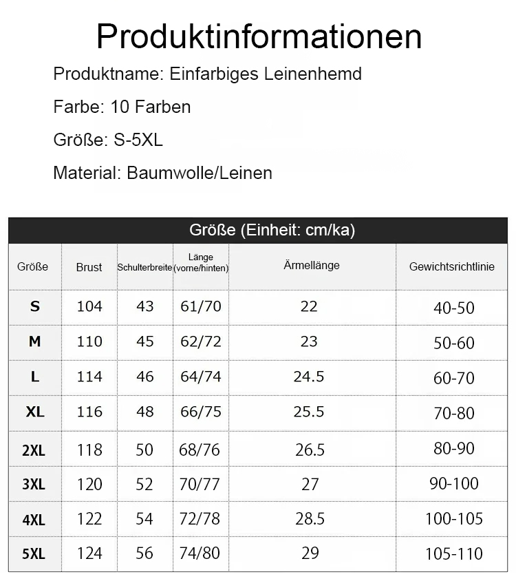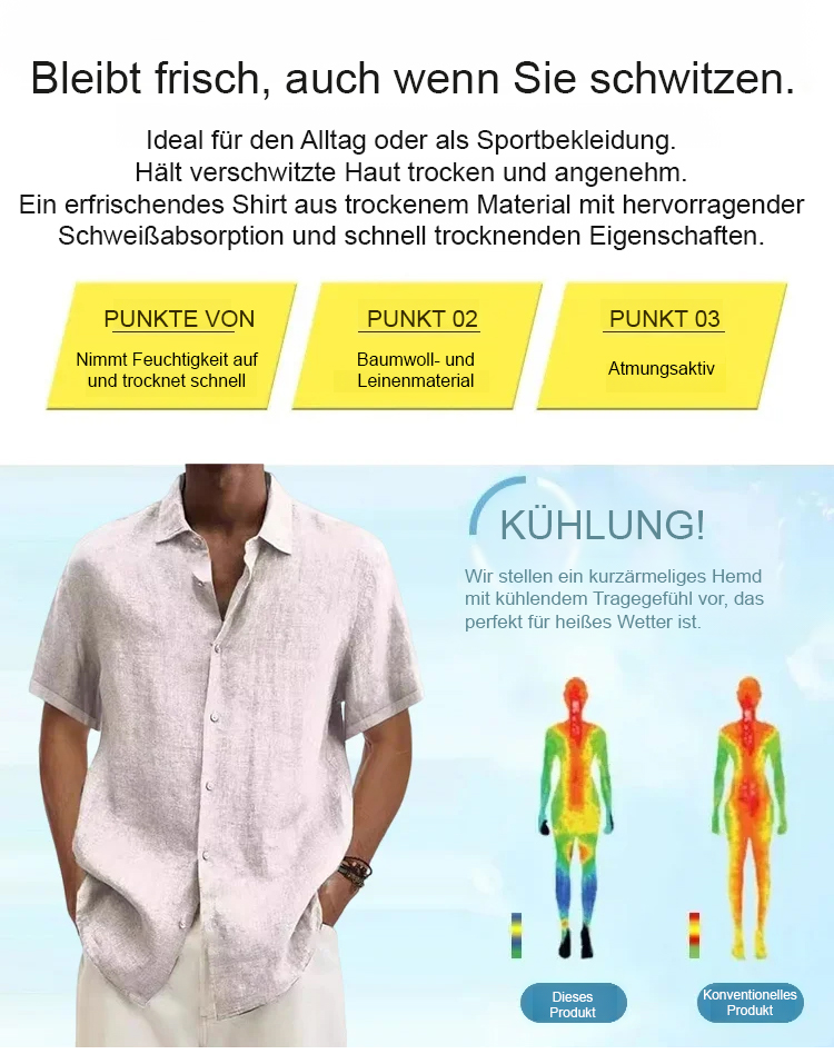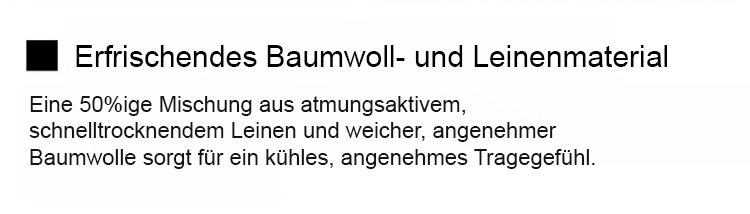 ✔️ Baumwolle und Leinen 50% + 50%, schweißabsorbierend und atmungsaktiv ✔️ Nicht stickig und nicht klebrig ✔️ Den ganzen Tag tragen ohne schwitzigen Rücken